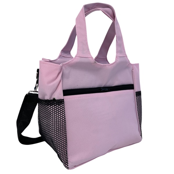 Väskan är mycket rymlig och har flera fack på insidan, varav ett med dragkedja. Utsidan har två öppna fack med gummistroppar, som håller trimverktyg och flaskor på plats, en ficka med dragkedja och två öppna fack i luftig mesh på respektive kortsida.
