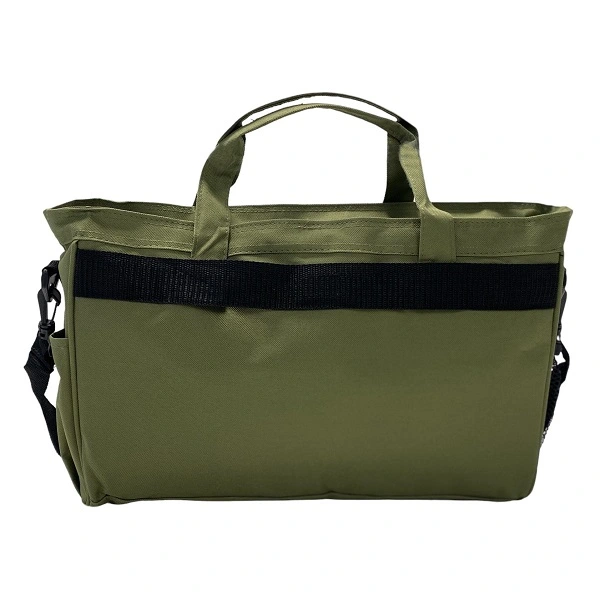 Väskan har både bärhandtag och bekväm, justerbar axelrem Baksidan är försedd med en rem som gör det möjligt att smidigt sätta fast väskan på en rullbar kabinväska. Mycket praktiskt när man är på resande fot.