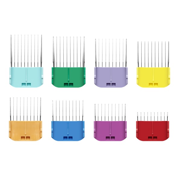 Distanskammarna är färgkodade vilket gör det enkelt för dig att hitta rätt storlek när du ska klippa din hund. De träs lätt på skäret och sitter bra på plats.