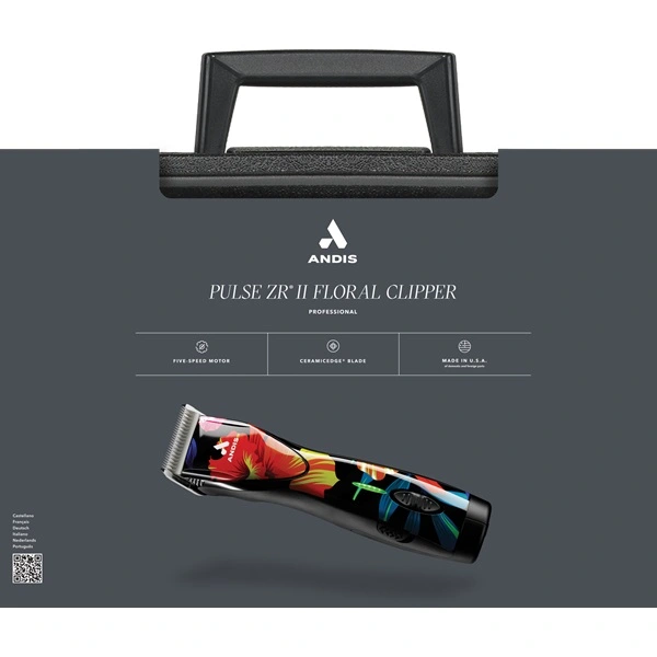 Nya, läckra Andis Pulse ZR ll Flora är en kraftfull, mycket tyst, ergonomisk och sladdlös klippmaskin med vackert blommönster.