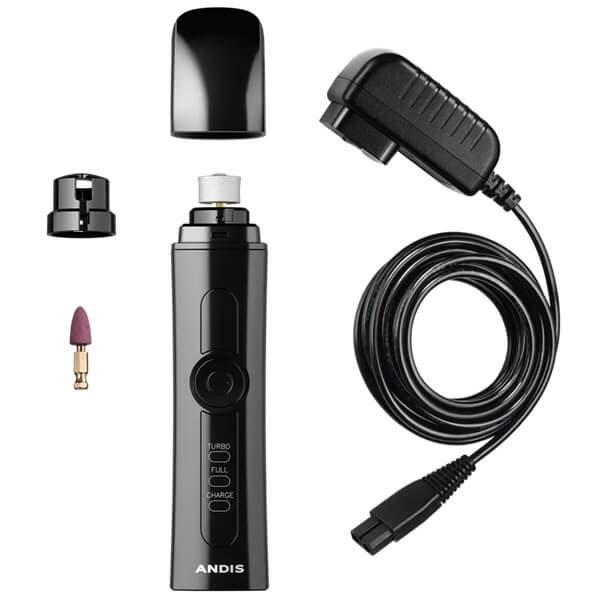 Tyst sladdlös klofil från Andis. Två hastigheter, normal och turbo för att snabbt och smidigt fila din hunds klor. Klofilen har ett uppladdningsbart lithium ion batteri och kan även användas med sladd. Det medföljer två slipstenar: en för grövre filning och en för slutfinish.