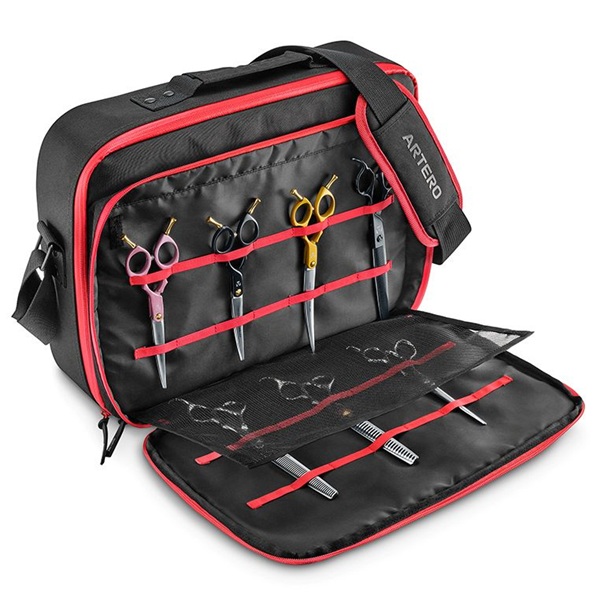 Artero Atenea är en praktisk och tålig förvaringsväska i slitstark nylon. Perfekt att ta med sig till hundutställningar eller på resor. Här får du plats med saxar, pälsvårdsverktyg och mycket mer. Gillar du ordning och reda och att ha full koll på alla dina groomingverktyg kommer du att ha stor användning för den här väskan.