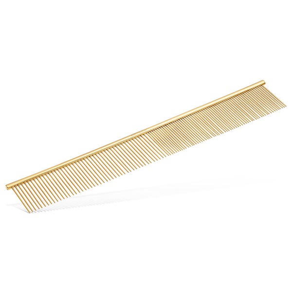 Hundkammens hållbara titanbeläggning är antistatisk och skyddar mot korrosion. Den släta finishen gör att den glider lätt genom pälsen.