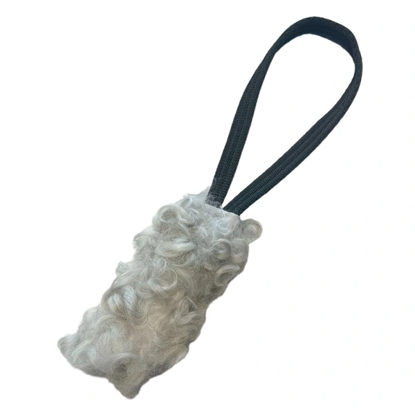 Det tåliga och smidiga valkbandet går igenom hela fårskinnet och bildar ett ca 15 cm långt handtag. Fårskinnet är ordentligt fastsytt för att göra leksaken så hållbar som möjligt.