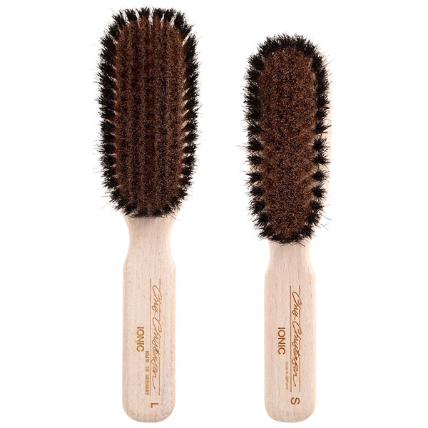 Ionic-borsten har ett bekvämt, rundat handtag av lätt bokträ.