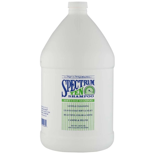 Chris Christensen Spectrum Ten är ett hundschampo speciellt framtaget för mjuka, vågiga eller silkiga pälsar. Redan efter första användningen märker du skillnad. Hundens päls blir mjuk, vackert glansig och mer lätthanterlig. Schampot fungerar även till katt.