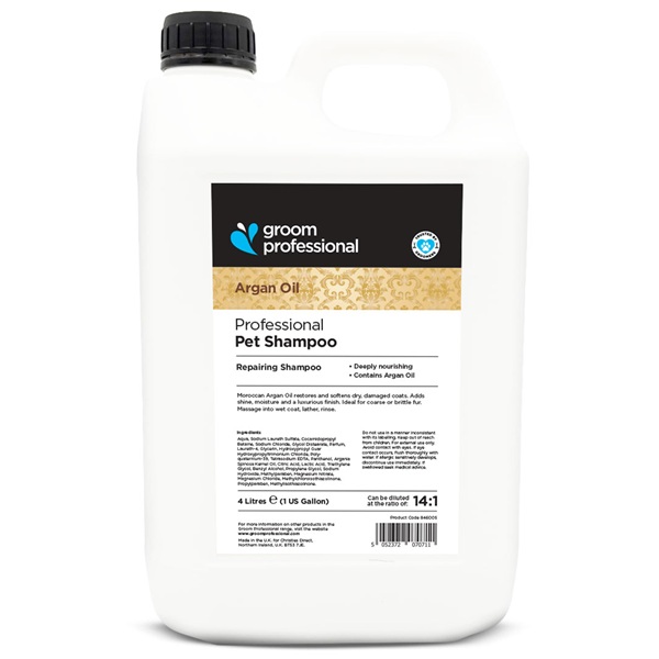 Detta lyxiga hundschampo innehåller Moroccan Argan Oil, som kapslar in fuktighet, återställer lyster och glans samt mjukgör pälsen. Schampot reparerar torr och spröd päls, och ger nytt liv till torr, tovig och skadad päls. Innehåller essentiella fettsyror som stärker hårstrået och försluter kluvna hårtoppar. Innehåller även Vitamin E för att bibehålla en fräsch päls. Idealisk för alla pälstyper, så ofta som det behövs. Använd tillsammans med Argan Oil Balsam för bästa resultat.