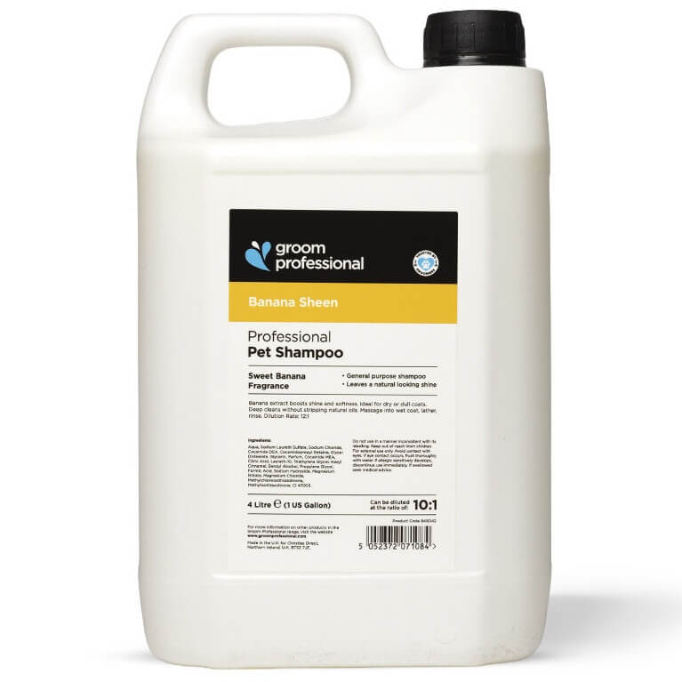 Banana Sheen är ett effektivt basschampo som skonsamt rengör alla typer av pälsar. Schampot innehåller bananextrakt som hjälper till att återfukta pälsen. Efter tvätt blir pälsen mjuk, glansig och full av liv. Banana Sheen är ett mycket populärt hundschampo med härlig doft av banan.