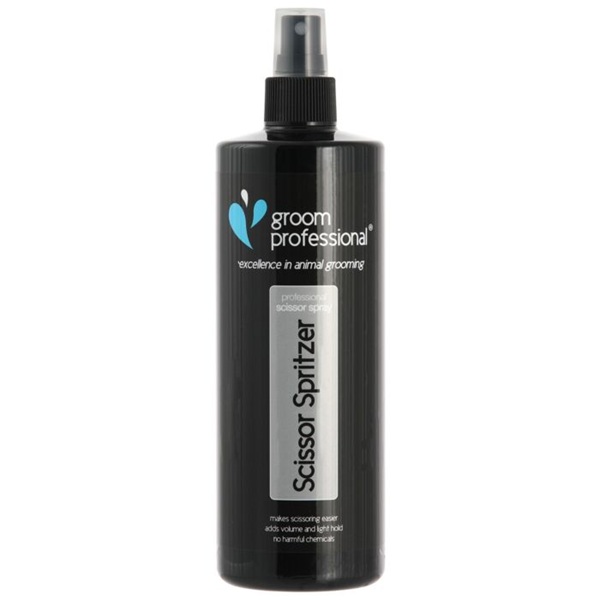 Groom Professional Scissor Spritzer är det ultimata hjälpmedlet för att reducera statisk elektricitet så att pälsen blir lättare att klippa. Sprayen ger volym utan att pälsen känns kladdig eller full av produktrester. Den gör att kammen lättare glider genom pälsen och hjälper dig att få till utmärkt precision när du klipper.
