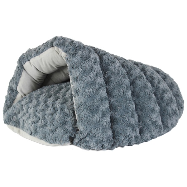 Ett mjukt och mysigt krypin för den lilla hunden eller katten. Utsida och dyna i snygg, lite lurvig grå plysch. Slätt, grått tyg på insidan. Vändbar dyna med plysch på ena sidan och slätt tyg på andra. En ombonad plats för god sömn och vila.