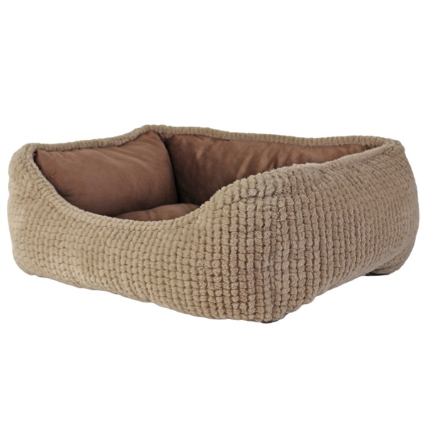 Mjuk och fin hundsäng för stunder av skön avkoppling och god sömn. Bekväm bädd för den mindre hunden. Pälsig, ljusare utsida med fin struktur samt mörkbrun insida med sammetslook. Bäddens höga kanter ger din hund skönt stöd för huvud och nacke.