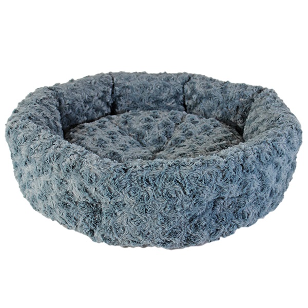 Hundbädden är tillverkad i lite lurvig grå plysch.