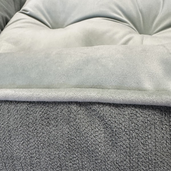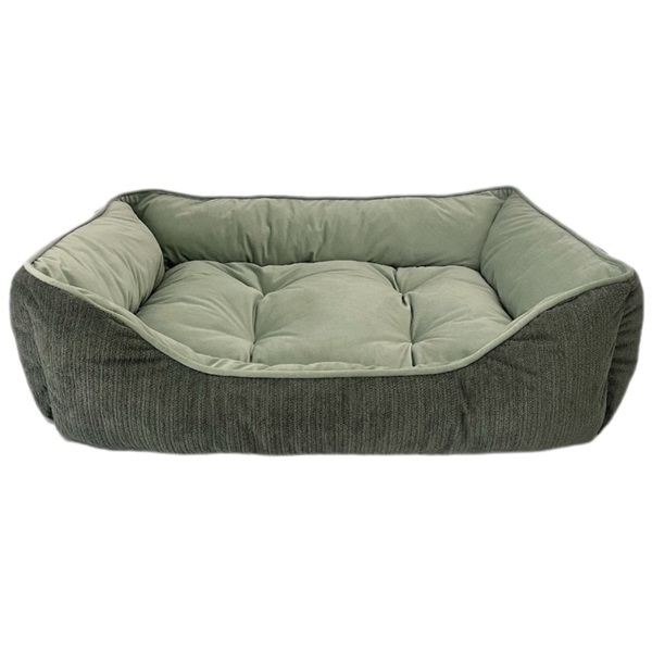 Mycket fin och stilren hundsäng för god sömn och skön avkoppling. Insida och passpoal i mjuk lindblomsgrön plysch samt lite mörkare utsida med fin struktur.