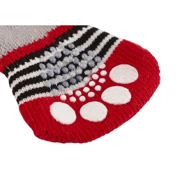 Mjuka, halkfria hundsockor i 100% bomull. De stickade strumporna har non-slipmaterial på sulorna, vilket ger ett bra grepp på hala golv som parkett och kakel. De skyddar också ömtåliga golv mot repor från klorna. Sockorna kan även användas för att hindra din hund att slicka och bita på tassarna om den har ett sår eller annan liten skada. De ger ett bra skydd under läkningstiden.