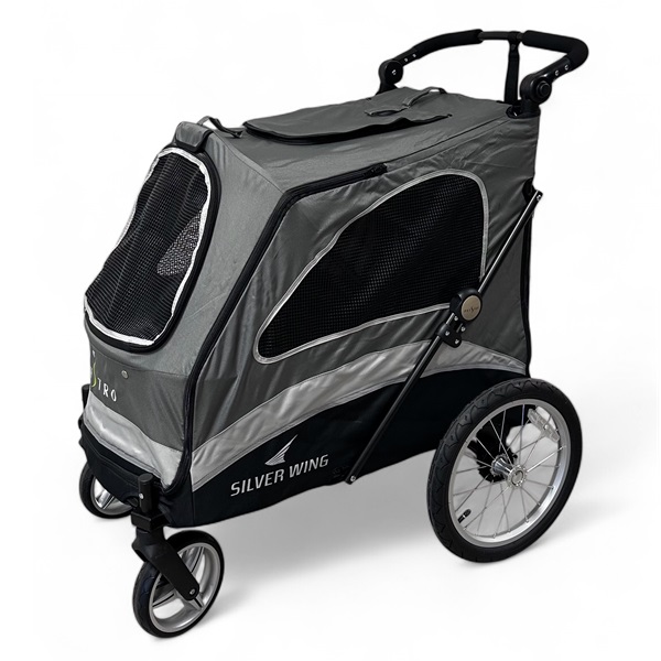 Hundvagn Silver Wing med fyra hjul och avtagbart trimbord - grå/svart - Large