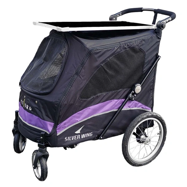 Hundvagn Silver Wing med fyra hjul och trimbord - svart/lila - Large