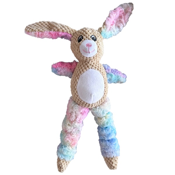 Mjuk och söt hundleksak med ben, armar och öron i regnbågens färger. Fin plyschleksak som passar lika bra för lek som för mys. Lätt för hunden att greppa, leka med och enkel för husse eller matte att kasta iväg för roliga apportlekar.