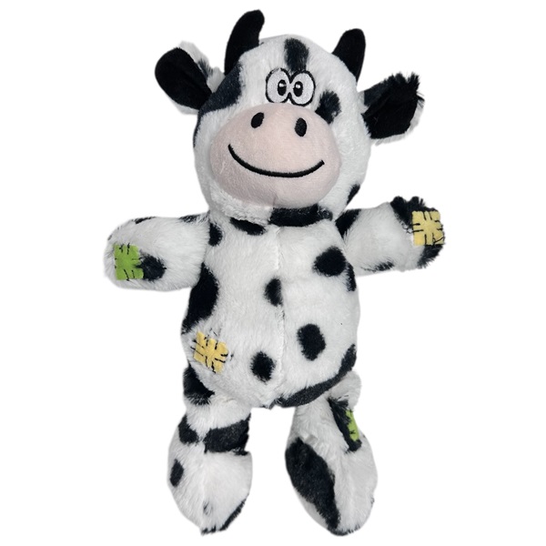 Kornelia kossa är en gullig hundleksak i mjuk plysch med påsydda lagningslappar i limegrönt och gult. Perfekt både till lugna mysstunder och lekar tillsammans med din hund.