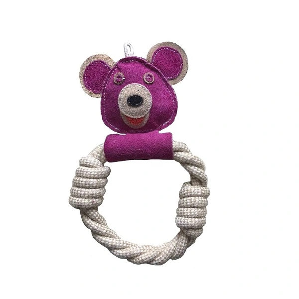 Hundleksak i äkta läder. Nallen är stoppad med jutefiber och har en ring av kraftfullt rep. Naturliga leksaker, giftfria och färgade med växtfärger. Rolig leksak för kamp- och kastlekar.