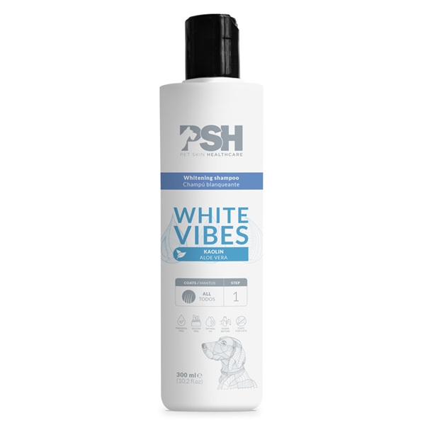 Whitening Vibes är ett hudvänligt, färdigblandat hundschampo som återställer och bevarar vitheten i vita pälsar, utan att bleka och utan färgämnen. Det är ett lättanvänt schampo för hemmabruk med samma höga kvalité som ett salongsschampo.