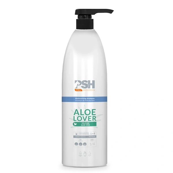 PSH Pro Groomers Aloe Lover är ett djupt återfuktande schampo speciellt framtaget för torr eller skadad päls. Schampot innehåller ren Aloe Vera och glycerin som hjälper till att återställa pälsens struktur, mjukhet och glans. Tack vare dess höga koncentration av Aloe Vera har det en lugnande och läkande effekt på päls och hud.