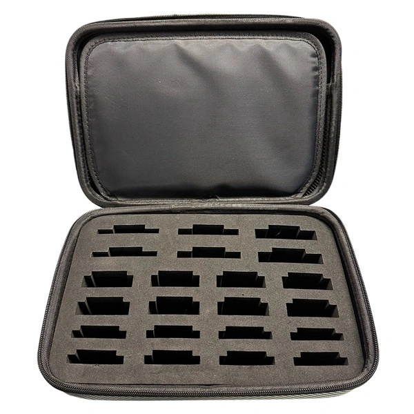 I Shernbao förvaringsväska för klippmaskinsskär ligger dina skär väl skyddade. Väskan har en insats i skumgummi med plats för tjugotvå stycken skär i olika storlekar. Insatsen går att ta ur så att du enkelt kan rengöra väskan. I locket finns ett nätfack för förvaring av exempelvis verktyg eller andra småsaker. Väskan är rejäl och stängs med dragkedja. Utmärkt för dig som vill ha ordning och reda bland dina klippmaskinsskär, antingen i salongen eller hos dig som klipper din hund hemma.