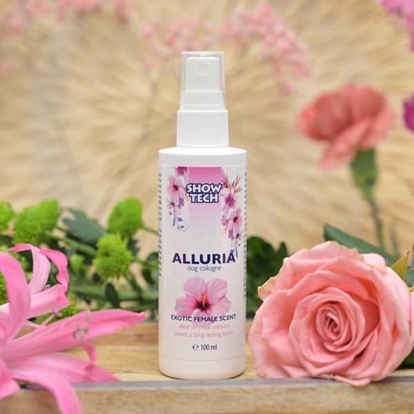 Show Tech Alluria doftspray är en blommig och lyxig hundcologne. Doftsprayen har toppnoterna jasmin, ros och kanel som ger en exotisk fruktig doft.