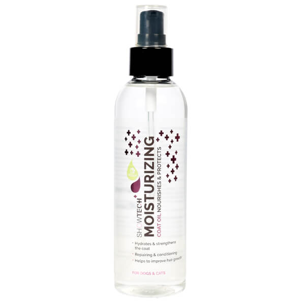 Show Tech+ Moisturizing Coat Oil är en vårdande och mild mineralolja som passar utmärkt för lång eller torr päls. Den återfuktar, reparerar och hjälper till att hålla pälsen i god kondition året om. Pälsoljan ökar pälsstrånas elasticitet, vilket ger ett bättre skydd mot slitage och yttre påfrestningar. Den absorberas snabbt och lämnar pälsen mjuk, glansig och lätt att kamma igenom. Oljan minskar dessutom frissighet och fungerar som värmeskydd.