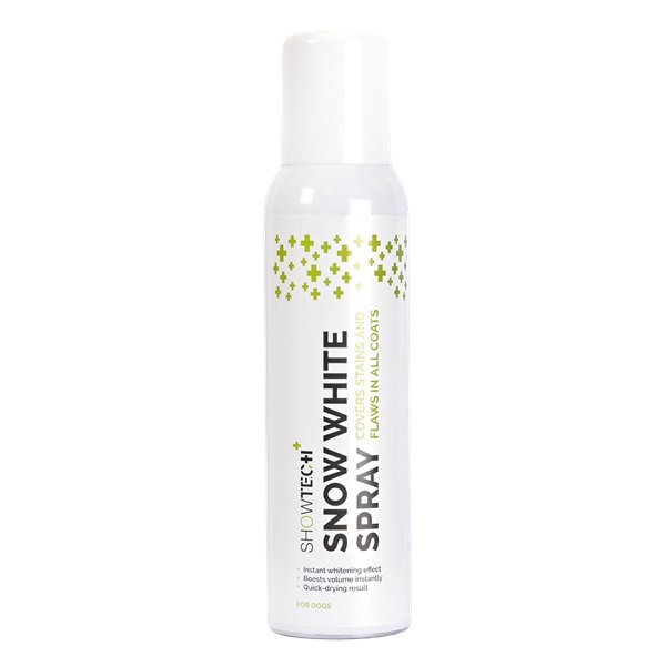 Show Tech+ Snow White Magic Cover är en intensivt vit spray som används för att täcka missfärgningar i hundens päls. Sprayen kan också användas för att förbättra vitheten i hela pälsen. Lätt att applicera och ger en naturligt vit look.