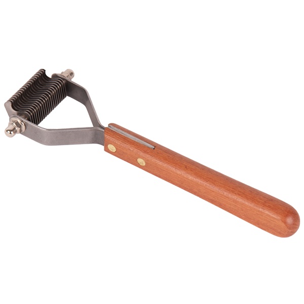 Show Tech Speed stripper underullskarda används för att snabbt och effektivt eliminera underull och lös päls. Kardans böjda blad är skonsamma mot din hunds hud samtidigt som de effektivt får med sig underull. Bladdelen i rostfritt stål är väl fäst i ett bekvämt trähandtag. Ett utmärkt verktyg att använda under fällperioden.