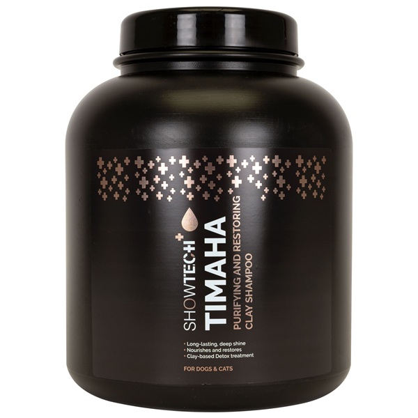 Show Tech+ Timaha är ett lyxigt hundschampo för extra djuprengöring och återfuktning av pälsen. Schampot innehåller lera och fruktextrakt för maximal rengöring och återfuktning, en lyxbehandling för både päls och hud. Eliminerar effektivt smuts, fett, rester av stylingprodukter och dålig lukt. Leran verkar dessutom vårdande för huden och kan minska hudirritationer.