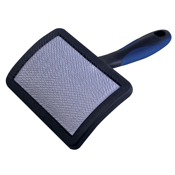 En ergonomisk och mycket lätt universalkarda med greppvänligt anti-sliphandtag. Det böjda skaftet gör det enklare att komma åt att borsta även på svåråtkomliga och känsliga ställen på hunden. De lätt böjda stiften sitter på en mjuk dyna, vilket gör dem flexibla och följsamma och därför också skonsamma mot hundens päls. Använd en grov kam för kontrollera att det inte finns några tovor kvar efter borstningen. Den här kardan är också idealisk att använda när du föntorkar pälsen.