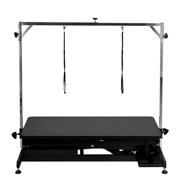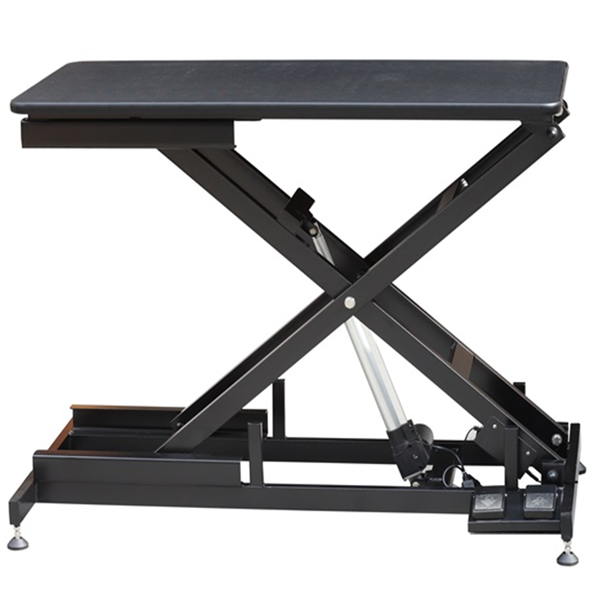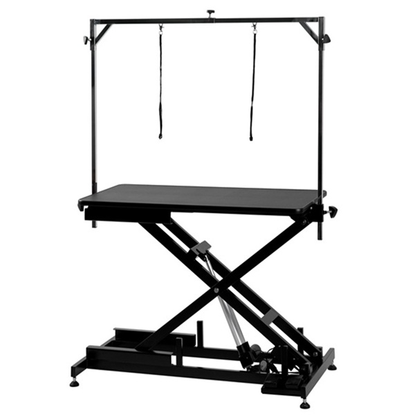 Tack vare att trimbordet är höj- och sänkbart får du alltid en optimal arbetsställning, oavsett hur lång du är, hur stor hunden är eller om du sitter eller står när du arbetar. Höjden, som ställs in med hjälp av en fotpedal, kan justeras från 29-107 cm.