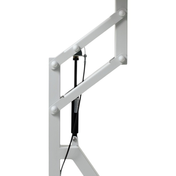 Pneumatiskt lyftsystem som drivs med luft, till skillnad från ett hydrauliskt trimbord där kolven drivs med oljetryck.