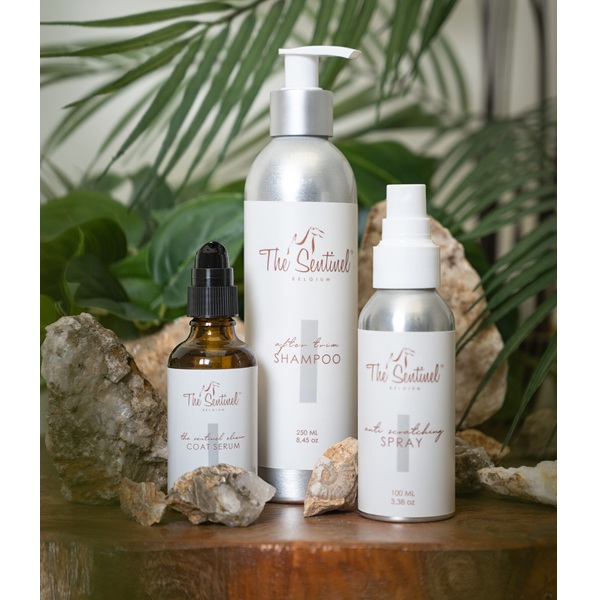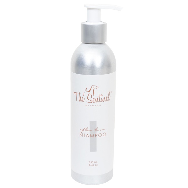 The Sentinel After Trim schampo är det perfekta schampot att använda efter handtrimning av din strävhåriga hunds päls. Schampot rengör skonsamt och hjälper till att bibehålla strukturen och texturen i pälsen. Det lugnar effektivt huden och förebygger irritationer och röd hud som kan komma efter handtrimning. Fritt från SLS och parabener.