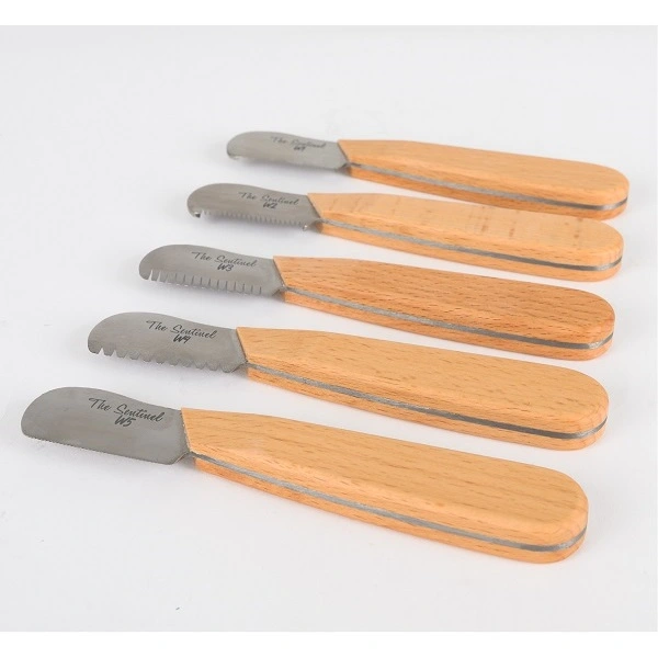 The Sentinel Trimknivar finns i fem olika modeller med antingen smalt eller brett handtag för att passa alla händer. Alla knivar finns för både högerhänta och vänsterhänta. Dessa handgjorda knivar skadar eller bryter inte pälsen och det finns en kniv för all typ av handtrimning, oavsett om det gäller detaljarbete och finish inför en hundutställning eller för kommersiellt bruk i salongen.