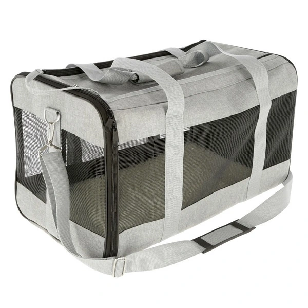 Snygg och praktisk transportväska för hund. Hundväskan har nät på framsidan och på sidorna för bästa komfort och kan bäras antingen i handtagen eller med den justerbara axelremmen. Öppning med blixtlås på både fram- och ovansida.