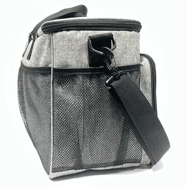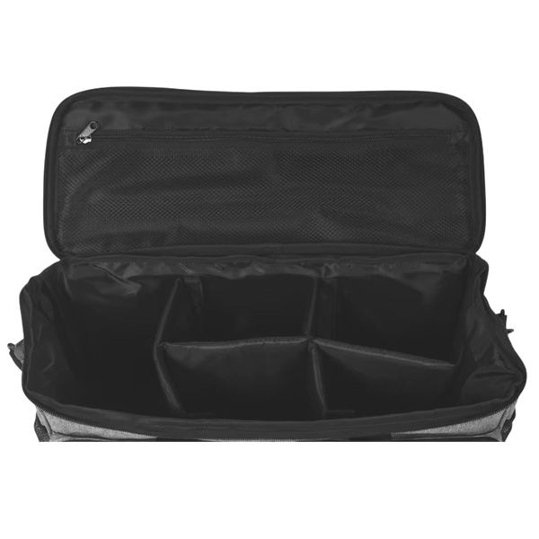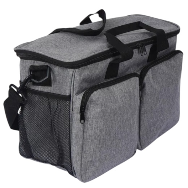 Mycket rymlig tillbehörsväska i snyggt gråmelerat tyg. Stabil och samtidigt mjuk och smidig. Perfekt att ta med sig till hundutställningar eller på resor. Här får du plats med saxar, pälsvårdsverktyg, flaskor och mycket mer. Gillar du ordning och reda och att ha full koll på alla dina verktyg och annat kommer du att ha stor användning för den här väskan.