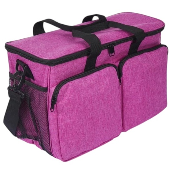 Mycket rymlig tillbehörsväska i snyggt rosamelerat tyg. Stabil och samtidigt mjuk och smidig. Perfekt att ta med sig till hundutställningar eller på resor. Här får du plats med saxar, pälsvårdsverktyg, flaskor och mycket mer. Gillar du ordning och reda och att ha full koll på alla dina verktyg och annat kommer du att ha stor användning för den här väskan.