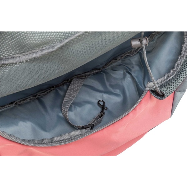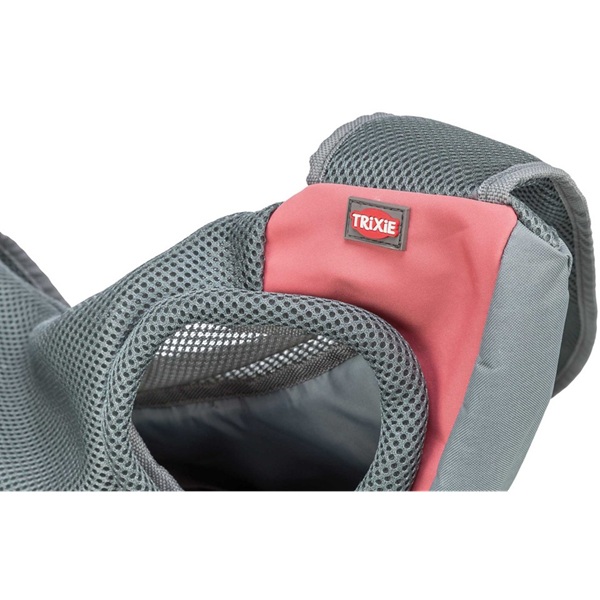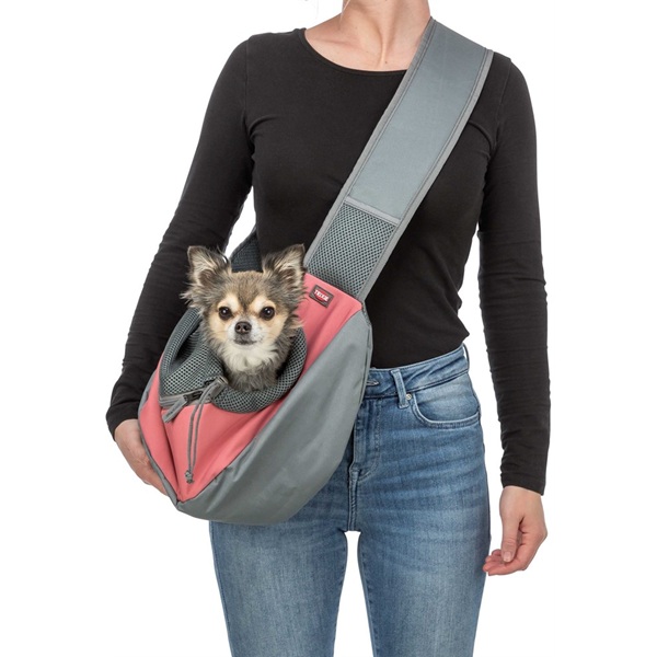 Trixie Sling hundväska gör att du enkelt kan bära med dig din lilla hund på ett bekvämt sätt. Den breda, vadderade axelremmen gör hundväskan skön att bära. Axelremmens längd är justerbar. Väskans ovansida har ventilationsnät för bästa komfort. Axelväskan stängs med dragkedja som löper fram till öppningen för hundens huvud. Storleken på öppningen för huvudet går att justera med dragsko, men kan inte stängas helt.