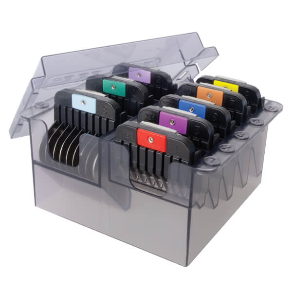 Wahl distanskammar i rostfritt stål. Distanskammarna är färgmarkerade så man enkelt ser skillnad på storlekarna.
